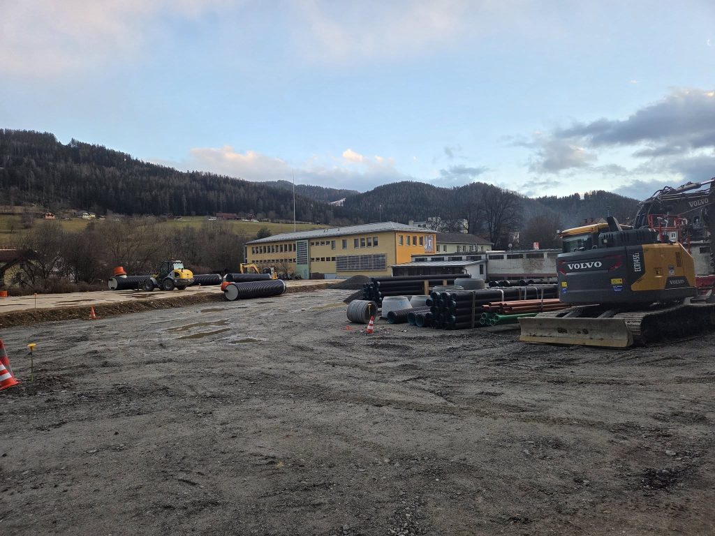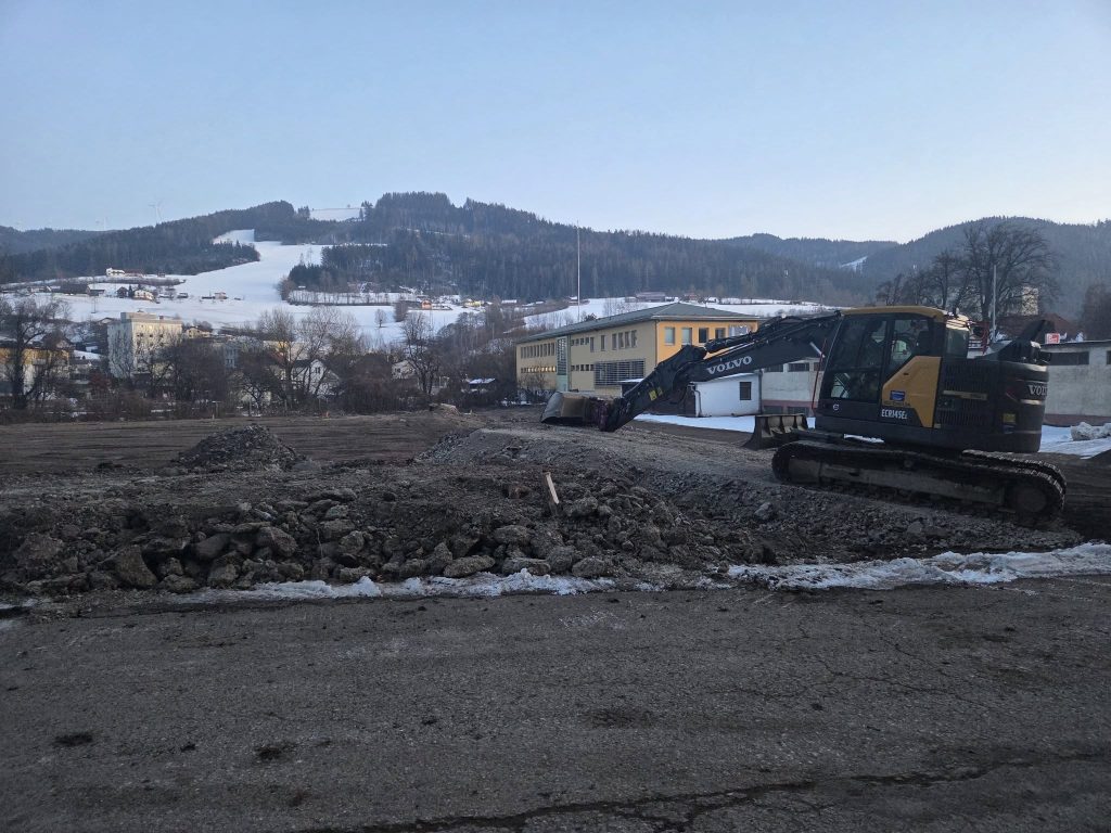 Nach der initialen Baubesprechung der Fa. PORR, Vertretern der Stadtgemeinde Kindberg und der FF Kindberg-Stadt sind bereits die ersten Baumaschinen auf dem Roßdorfplatz vorgefahren. Dadurch wird der offizielle Baustart des neuen Rüsthauses der FF Kindberg-Stadt nun auch für die Bevölkerung sichtbar.